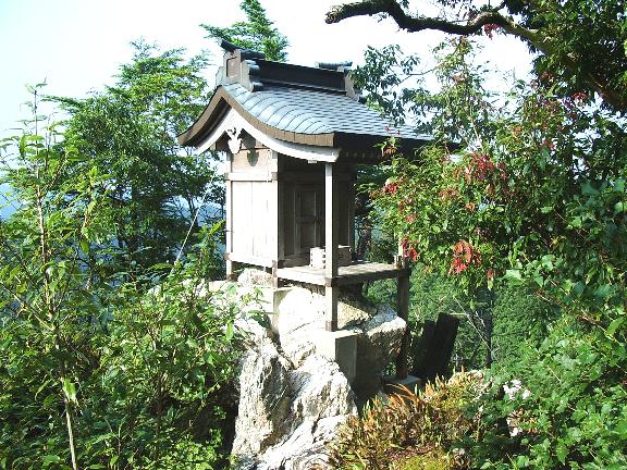 まだまだ先だろう、上だろうと思っていただけに拍子抜けする近さです。看板があって崖の突端には巨岩上に空海座像。背後にはいくつも小さな祠がありました。